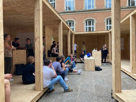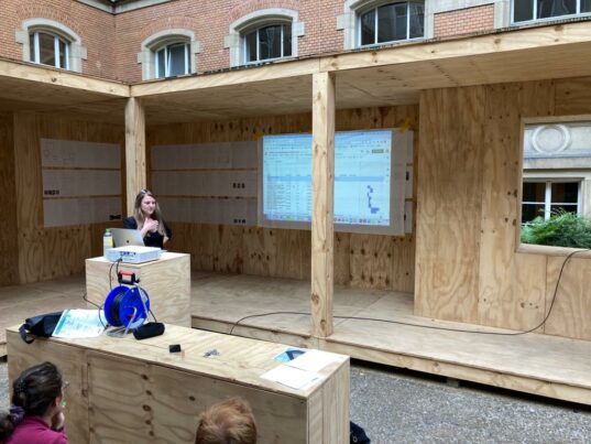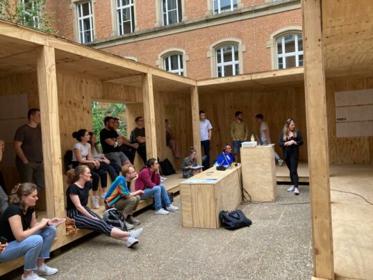 As part of a team meeting, the RoofKIT team prepared for the Solar Decathlon competition in Wuppertal in the courtyard of the department of architecture.