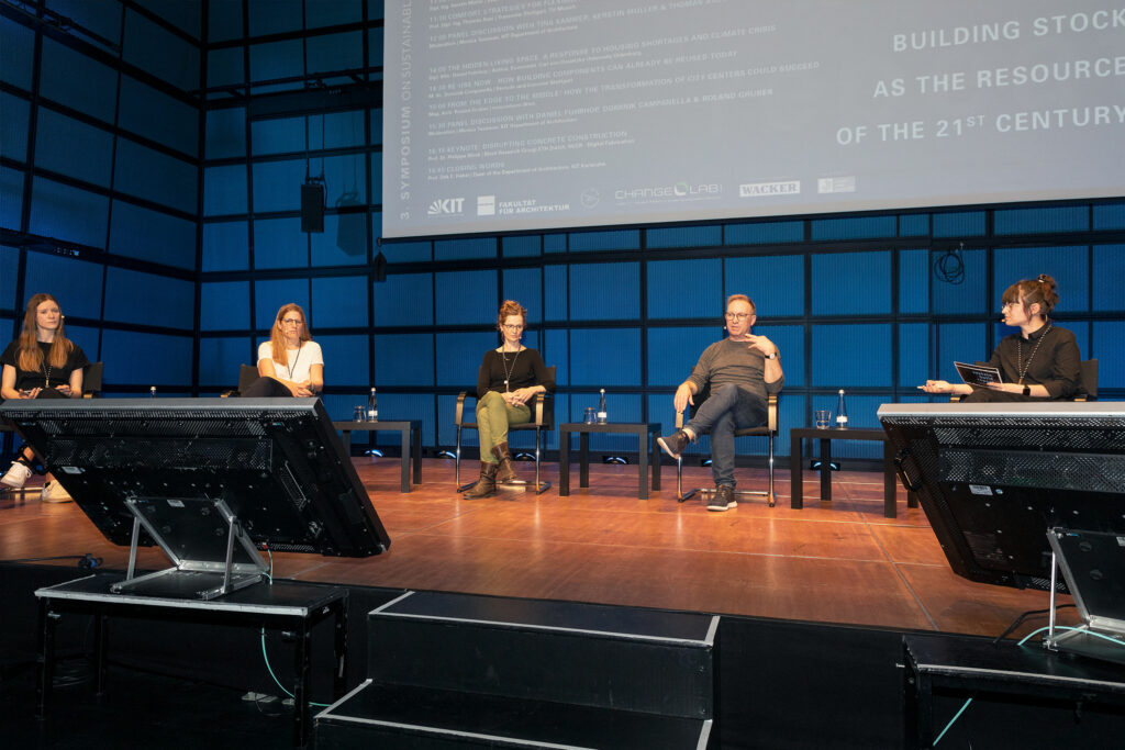 Invited speakers were Tina Kammer, Kerstin Müller, Thomas Auer, Daniel Fuhrhop, Dominik Campanella, Roland Gruber and Philippe Block. The panel discussions were moderated by Monica Tusinean, who was assisted by Elena Boerman with audience questions. Prof. Dirk E. Hebel guided the audience through the event.